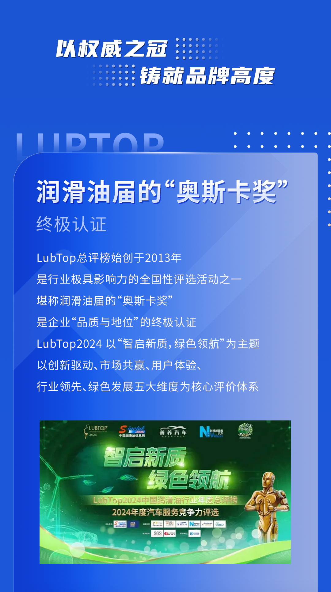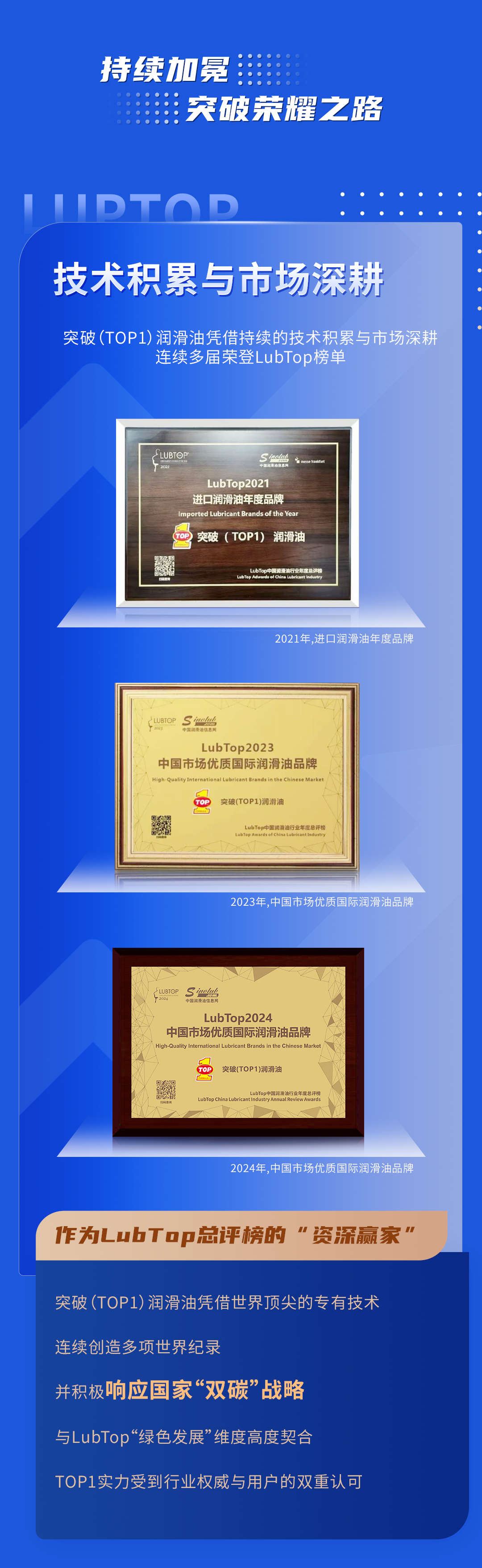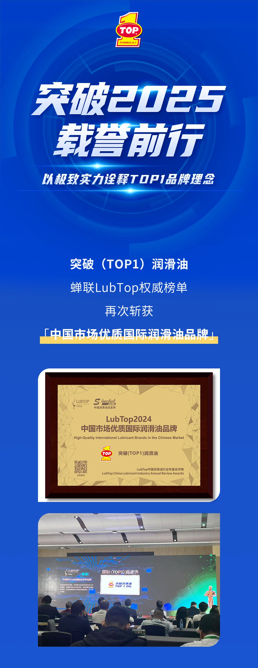 喜讯!突破润滑油荣获LubTop2024中国市场优质国际润滑油品牌奖项