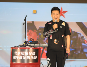 突破(TOP1)润滑油大中华区执行总经理李春卿先生,出席北京超级穿越机车音乐俱乐部的开业现场。他致辞表达了对俱乐部未来蓬勃发展的祝福,并期待着每一天的进步。