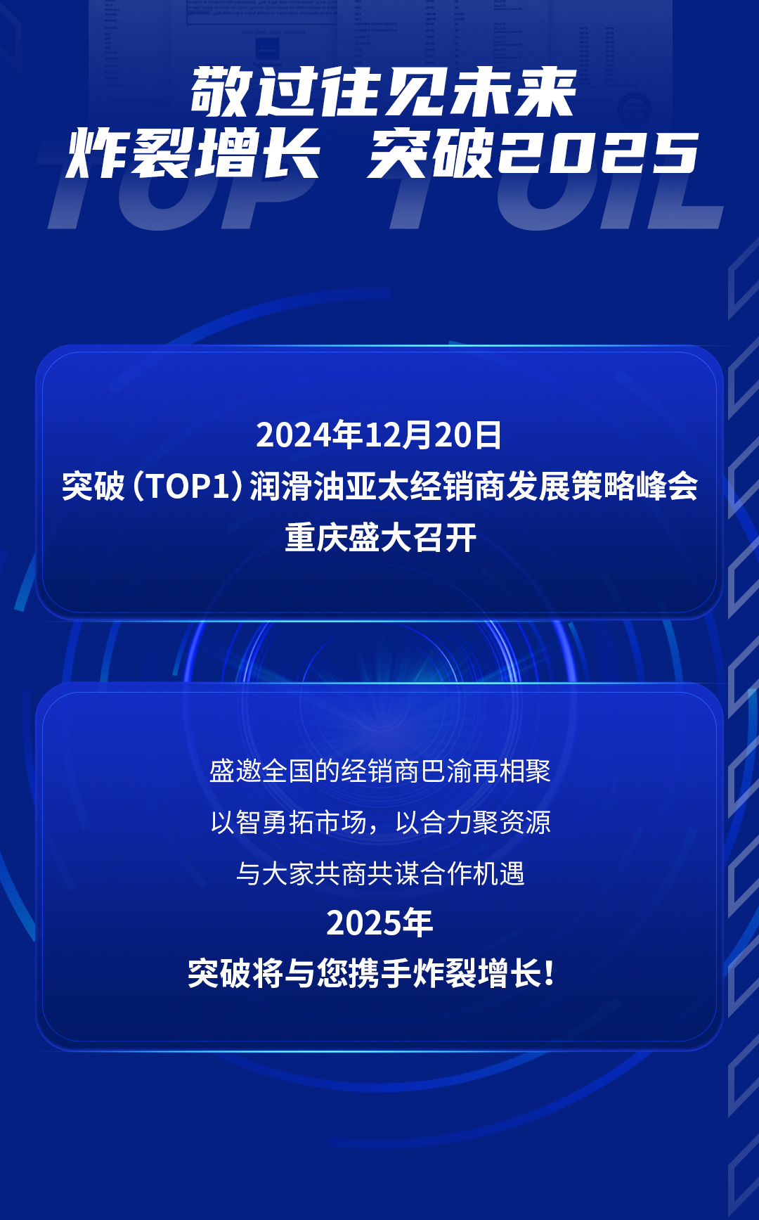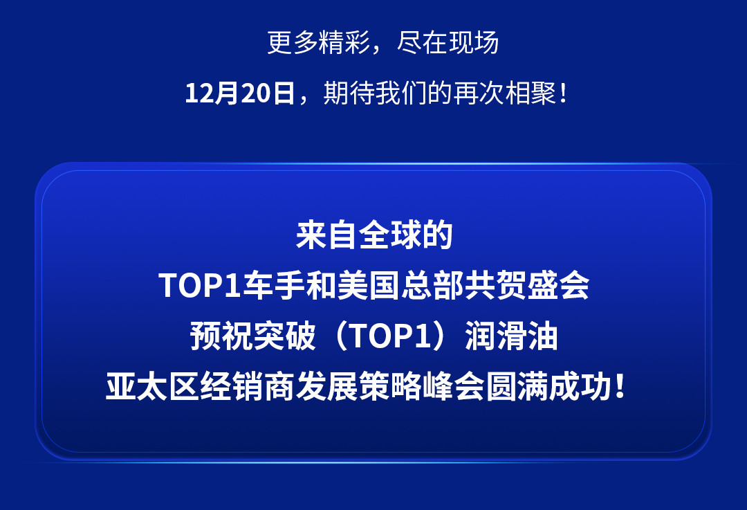 12月20日,突破(TOP1)润滑油亚太区经销商发展策略峰会集结!